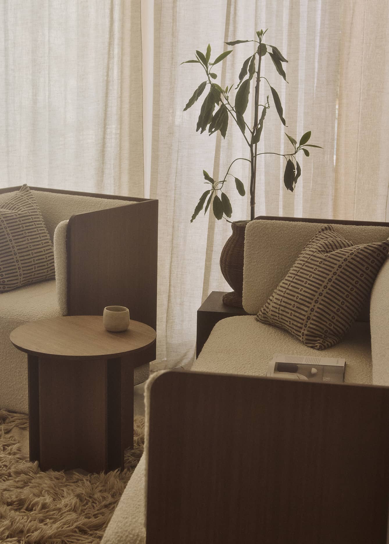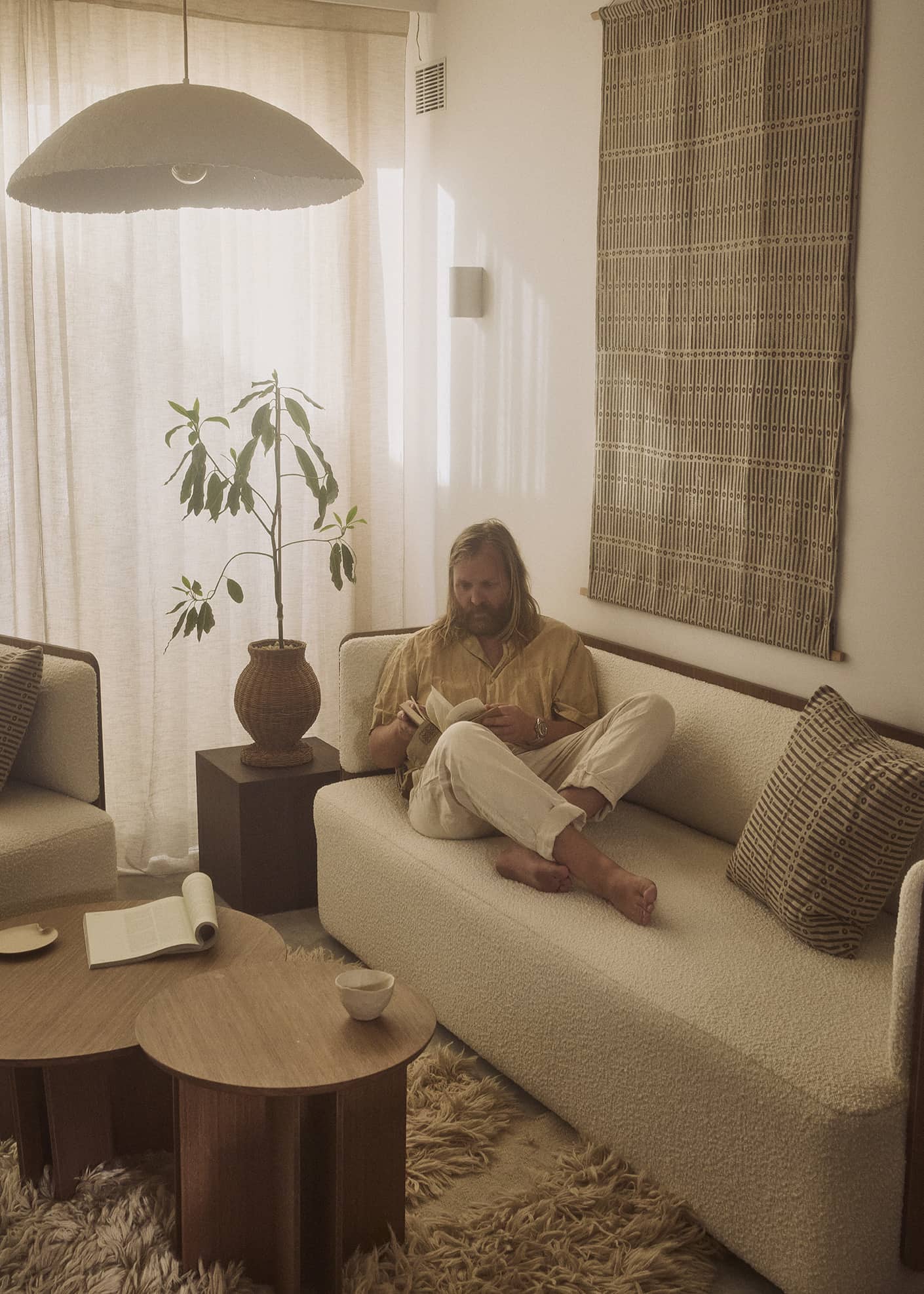 Discover the perfect blend of comfort and design with our Studio Sofa This stylish piece features clean lines contrasted beautifully by sumptuous upholstery in premium bouclé fabric. Ideal for any setting, whether home or commercial, its durable form and handcrafted carpentry promise longevity while elevating your space’s aesthetic. The clean, uniform lines sit perfectly alongside the cosy interior・ a beautiful visual balance. Custom-made in our variety of bamboo finishes and a range of different bouclé fabrics of your choosing, a statement sofa that combines form and function seamlessly.