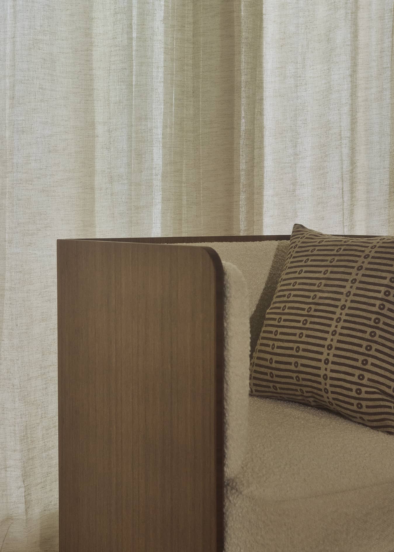 Introducing the AE25 Studio Lounge Chair, a stunning addition that complements the AE Studio Sofa beautifully. With its sleek design and soft, cosy interior, it enhances any lounge area while making a bold statement on its own. The timeless clean lines of the armchair create an elegant aesthetic that’s appealing from every angle. Crafted with warm bamboo and upholstered in textured bouclé fabric, this piece invites relaxation and comfort into your space. As always, every piece is meticulously handcrafted in various bamboo finishes and a selection of bouclé fabrics – of your choosing. Elevate your environment with this versatile armchair that combines both functionality and artistry effortlessly.